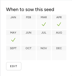 It's hard keeping track of what seeds need to be sown, when — we know. Be reminded about which seeds you need to sow now and track when you last made a sowing.
